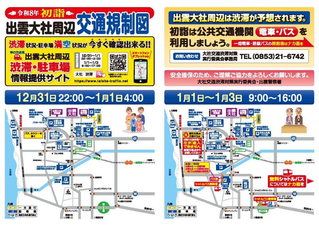 年末年始は出雲大社周辺駐車場および道路が大変混雑することが予想されます。